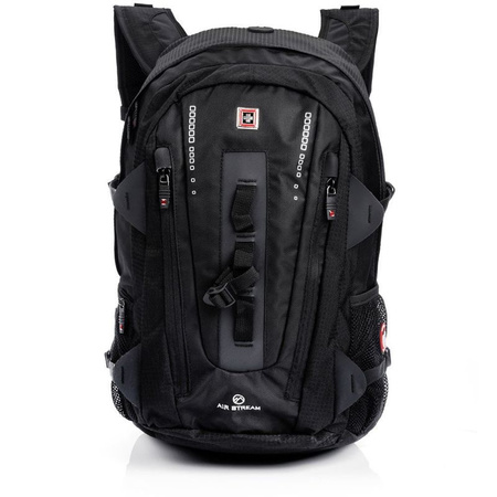 - Został wyposażony w specjalne zapięcia z przodu, piękne szwajcarskie logo i 2 otwierane na zamek komory.